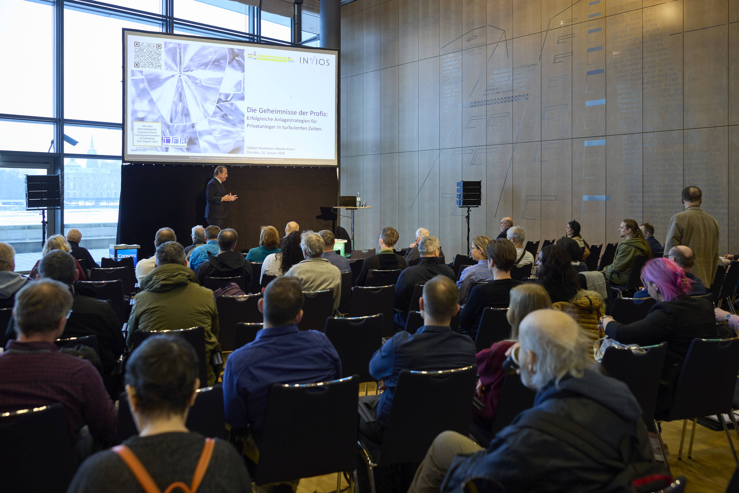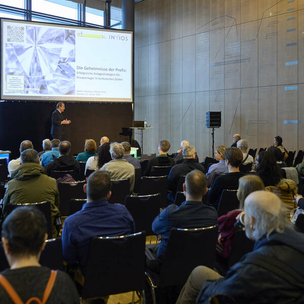 Die Besucher erlebten kurz nach Öffnung Nikolas Kreuz mit seinem unterhaltsamen und höchstaktuellen Vortrag: „Die Geheimnisse der Profis: Erfolgreiche Anlagestrategien für Privatkunden in turbulenten Zeiten.”